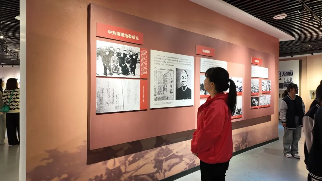 展厅内泛黄的历史照片、斑驳的革命遗物、生动的现场讲解,全景展现了南阳解放尤其人民、革命军队从无到有、从弱到强的光辉灿烂、奋斗历程,让师生党团员们深切感悟到了革命先辈矢志不渝、攻坚克难的崇高风范。