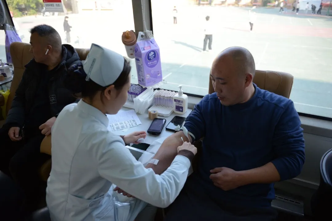 “作为党员,就该冲在前面!” 带头献血的党员代表范玉昌同志撸起袖子,脸上洋溢着坚定的笑容。在党员干部的示范引领下,参与献血的教职员工们有条不紊、井然有序。他们中有多次献血的 “老熟人”,也有初次参与的 “新面孔”。大家挽起衣袖、握紧拳头,鲜红的血液顺着导管缓缓流入血袋,承载着同志们对生命的敬畏和对社会的担当。
